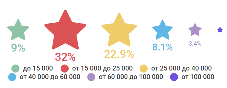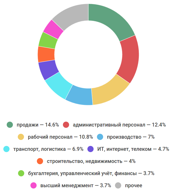 Распределение вакансий по зарплатам (% от общего количества предложений о работе):